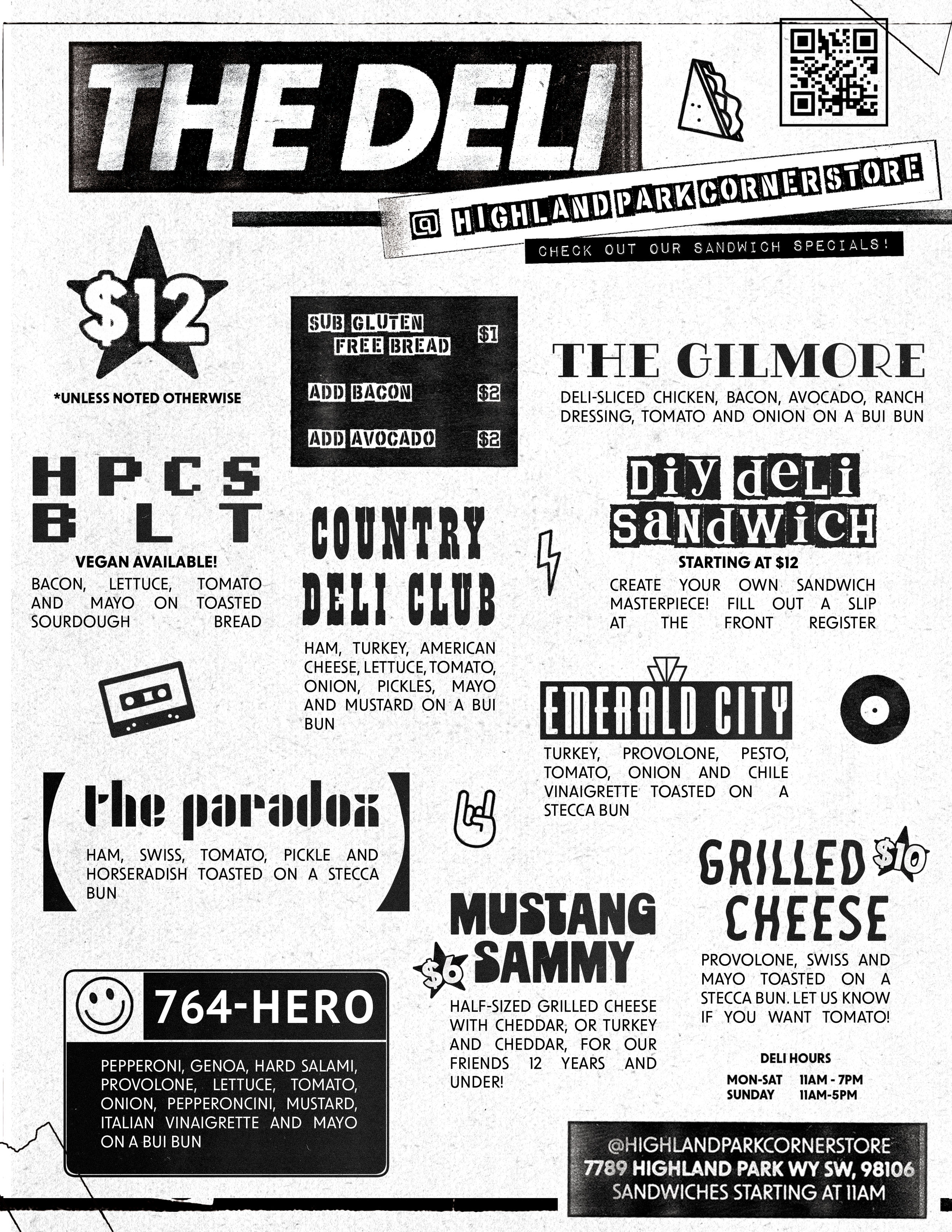 Highland Park Corner Store is a neighborhood gathering spot, serving quality locally sourced coffee, ice cream, sandwiches, beer, wine and provisions to the communities of Highland Park and greater West Seattle. Our mission is to build community through food, drinks and a welcoming environment to enjoy with friends and neighbors.